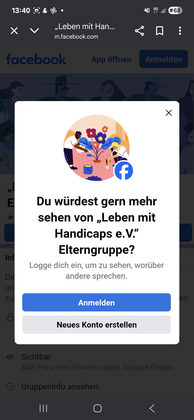 Wir haben auch eine Facebook-Gruppe für Eltern mit Behinderung